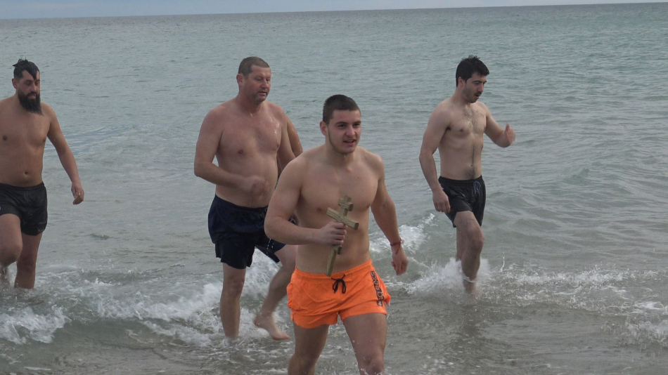 Преди да бъде хвърлен в морето, кръстът бе осветен от отец Павел Максимов. Деветима мъже се включиха в надпреварата по неговото изваждане.