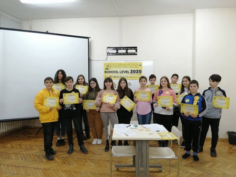 Йоана Димитрова (VII „д“) се класира на първо място в училищния кръг, който се проведе на 27.02.2020 в СУ “Свети Климент Охридски“, гр. Добрич. Йоана Димитрова спелува правилно думата “complex” и победи Мирослав Димитров (V „д“), който остана втори. И двамата ученици имат право да участват на регионалното състезание, което ще се проведе в края на м. март, 2020 г. в гр. Варна. Националният кръг на състезанието ще се проведе на 25 април 2020 в София.