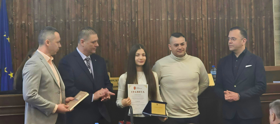 Отличието бе връчено от председателя на ПК „Спорт и младежки дейности“ Йордан Иванов, преди началото на днешното заседание на Общински съвет – Добрич.