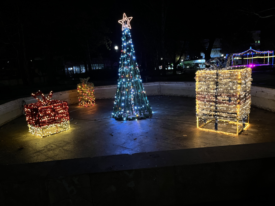 Изключително красив е светещият тунел, който осветява пътя на преминаващите по центъра от читалището в посока Стария дъб, както и новото оформление на големия фонтан. Най-новият акцент е на площада пред сградата на Общината, където е оформена малка коледна алея от красиви коледни елхички, улични фенери и светещи арки и венци.