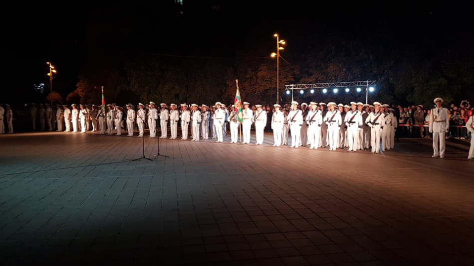 В паметното събитие участваха представителен духов оркестър и представителни блокове на Военноморските сили на Република България .