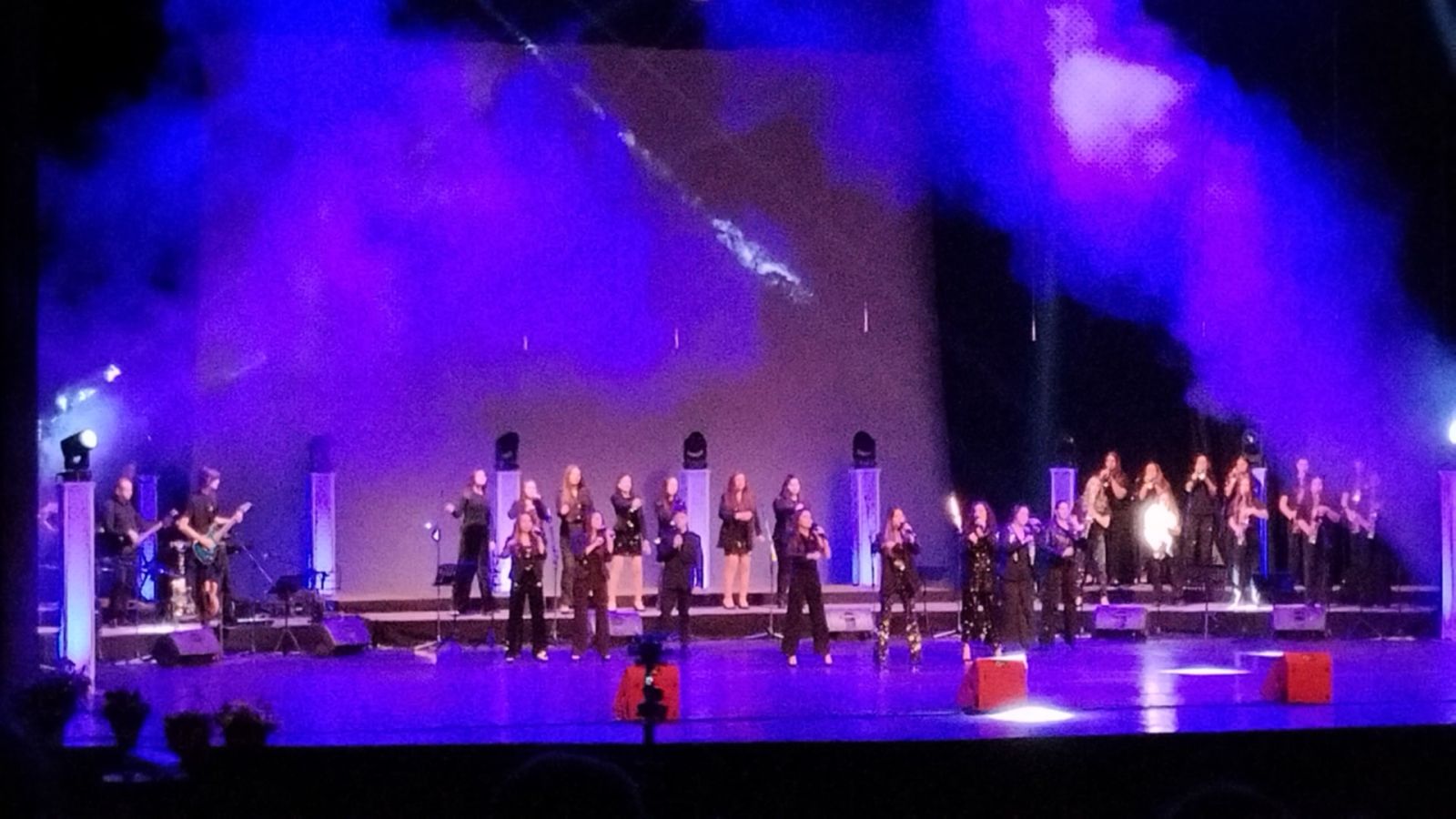 В музикалната част се включиха и ученици от паралелките по поп и джаз пеене, заедно с инструменталисти от брас бенда на училището, които допринесоха за цялостното звучене и динамиката на спектакъла.
