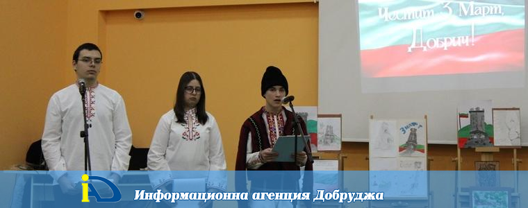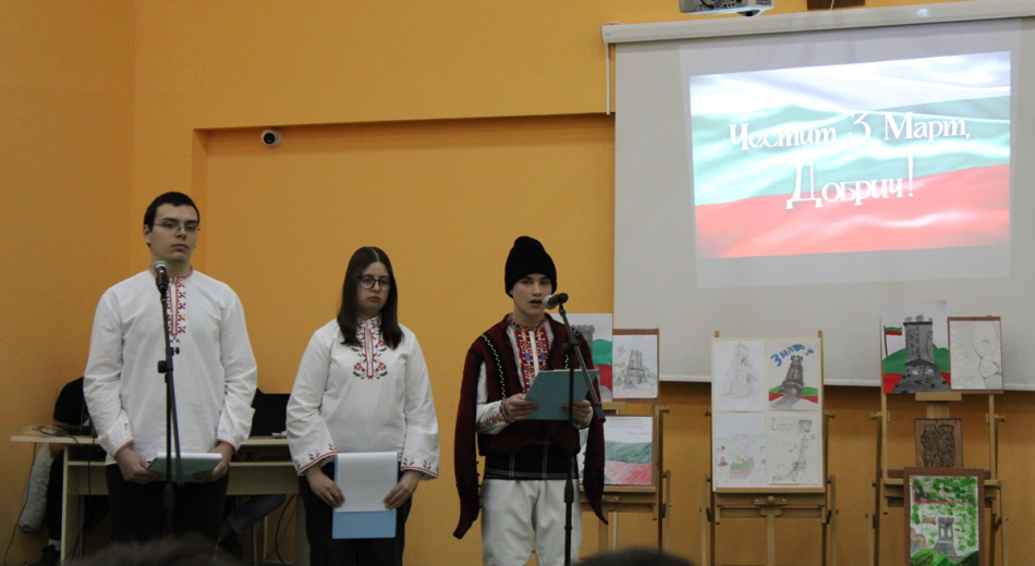 Тържество по повод Трети март се проведе в Професионална гимназия по техника и строителство „М. В. Ломоносов“ днес. Възпитаниците на учебното заведение се включиха в оспорвана надпревара при изготвянето на презентации на тема „По стъпките на героите“, а на първо място се класира Ясен Проданов от ХІА клас. Победител в конкурса за есе на тема „За Трети март и Свободата“ е Радослав Райнов от ХІІБ клас.