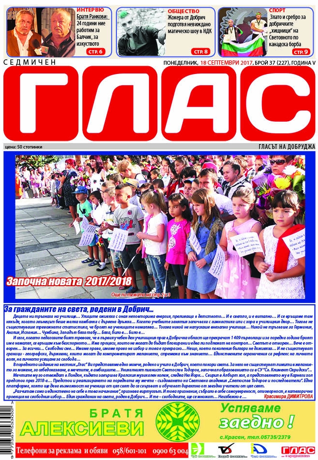В интервюто на броя: Братя Ранкови – Красимир и Веселин. „24 години ние работим за Балчик, за изкуството”, казват създателите на Международния фестивал на младите в изкуството „Виа Понтика“ в Балчик. Родният град на актьорите за десета година събира студенти от различни факултети по изкуствата от четири държави.