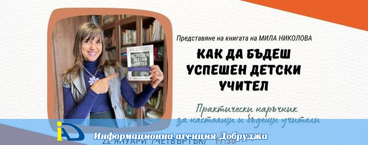 На 22 януари 2026 г. /четвъртък/, от 17.30 ч. в Интерактивната зала на Регионална библиотека „Дора Габе“ ще се състои премиера на книгата на Мила Николова „Как да бъдеш успешен детски учител“- Практически наръчник за настоящи и бъдещи учители.