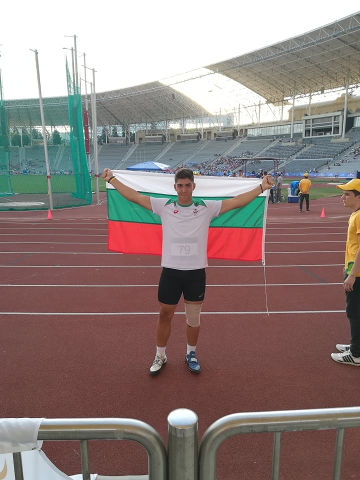 Валентин Андреев донесе първа титла на България от Европейския младежки олимпийски фестивал в Баку. Балчиклията спечели златото в хвърлянето на чук с най-добър резултат в състезанието от 82.72 метра. Сребърният младежки олимпийски шампион от Буенос Айрес 2018 премина границата от 80 метра в още един от опитите си - 82.42 метра.