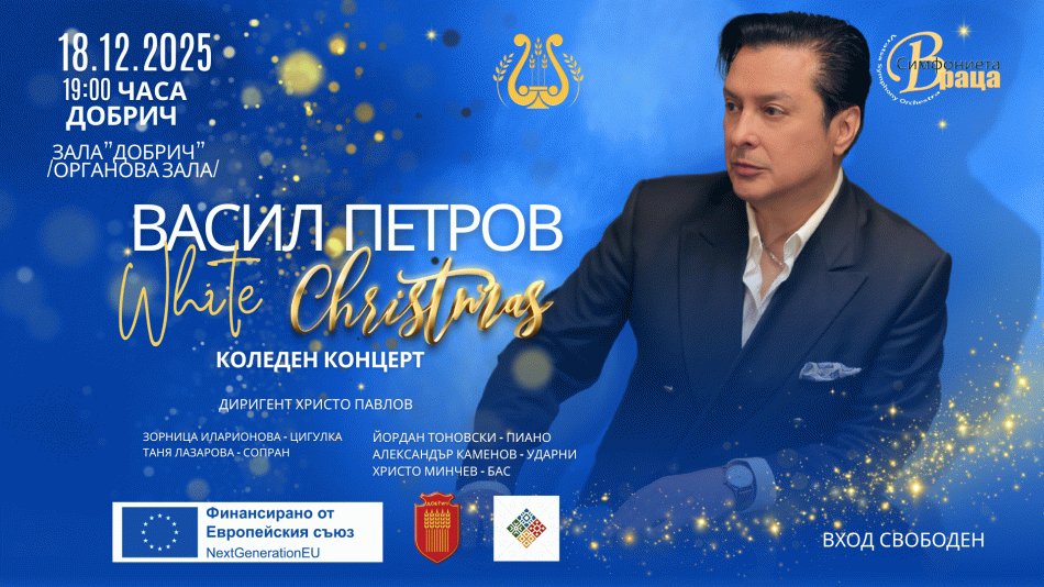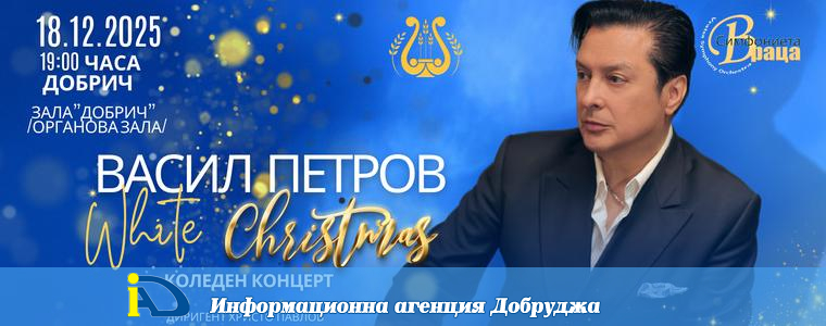 Тази Коледа Васил Петров е подготвил нещо специално. Една емоционална музикална вечер, посветена на идващото Рождество Христово, джентълмена в музиката представя едни от най-красивите Коледни песни от Американската и Европейската класика на 18 декември от 19:00 ч. в концертна зала „Добрич“.
