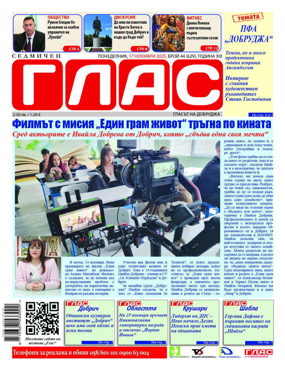 Цялото интервю може да прочетете на 6 и 7 страница в новия брой на вестник ГЛАС.