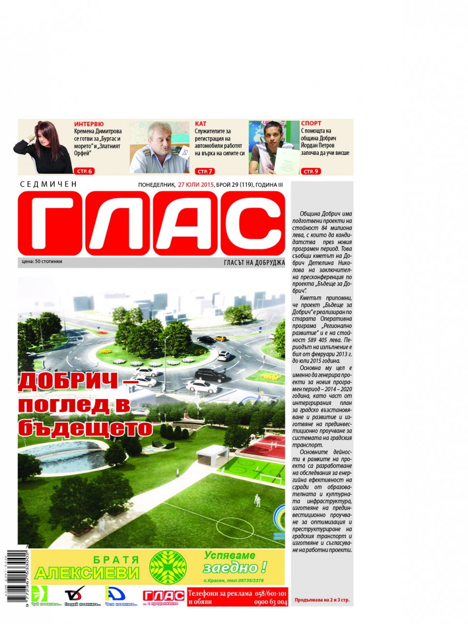 Подготвени проекти за 84 млн.лв., с които да кандидатства през новия програмен период има община Добрич. За какво точно става дума ще разберете в новия брой на в. ГЛАС, но все пак акцентите падат върху енергийната ефективност, интегрирания градски транспорт, образователната и културна инфраструктура, улиците и парка.
