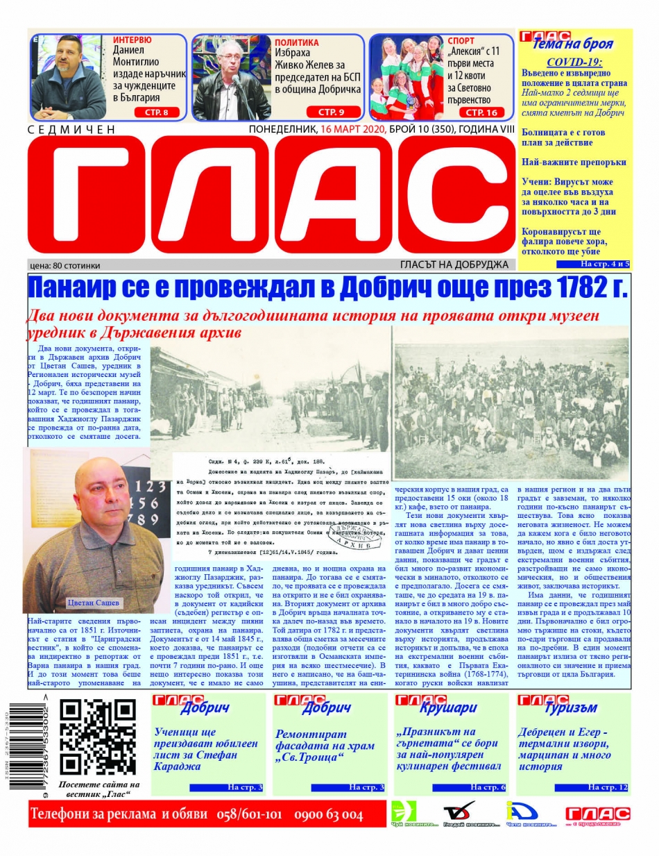 Темата на нови брой на вестник „ГЛАС“ е най-важната тема в този момент за града, областта, страната, Европа и света – коронавируса.