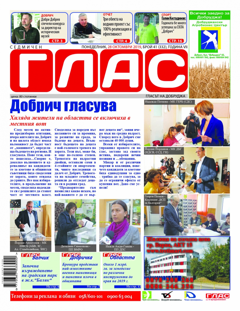 На спортната страница: Над 350 атлети от цялата страна на втория турнир в памет на Петър Арнаудов, организиран от СКЛА „Добрич”. Президентът на клуба Галин Костадинов: Годината бе много успешна за клуба, за следващата имаме още по-високи цели.