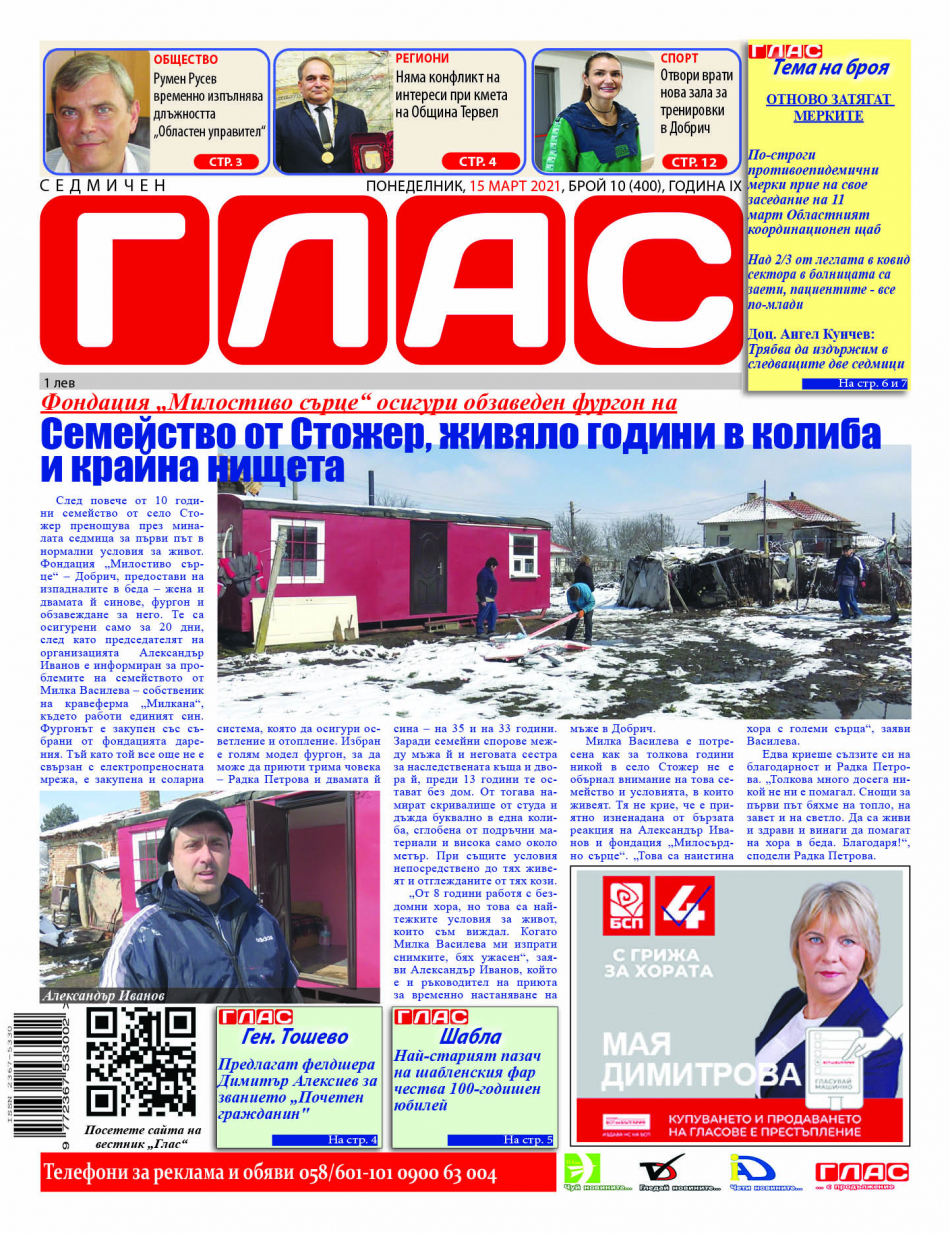 След продължаващата тенденция на нарастване на броя на новозаразените с коронавирус в област Добрич, Областният координационен щаб прие на свое заседание на 11 март, по-строги противоепидемични мерки. Това е темата на новия брой на вестник „Седмичен ГЛАС“.