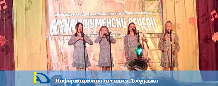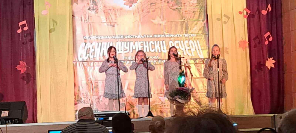 Децата от вокална група "Малките Ангелчета" при НЧ "Йордан Йовков - 1870 г." гр. Добрич, спечелиха Втора награда от проведения през уикенда в Шумен 12-и международен фестивал на популярната песен "Есенни Шуменски вечери".