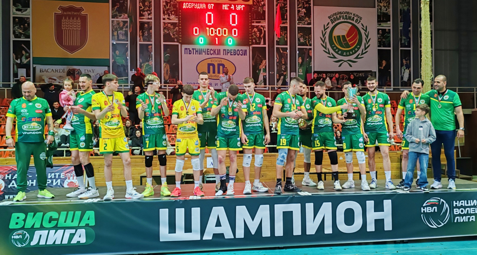 „Добруджа 07“ спечели шампионската титла във Висшата лига, след като във втория финален двубой от плейофите, игран в зала „Добротица“, победи „Металург“ (Перник) с 3:0 (25:19, 25:23, 25:19).
