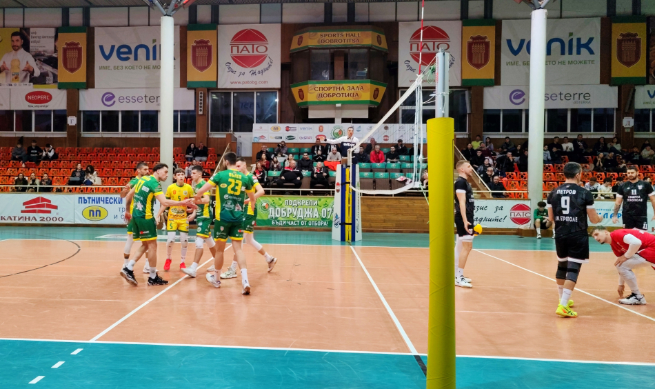 Добруджа 07 излезе начело във Висшата лига, след като победи досегашния лидер Етрополе с 3:0 (25:15, 30:28, 25:12) в мач от 12-ия кръг, игран в зала „Добротица“.