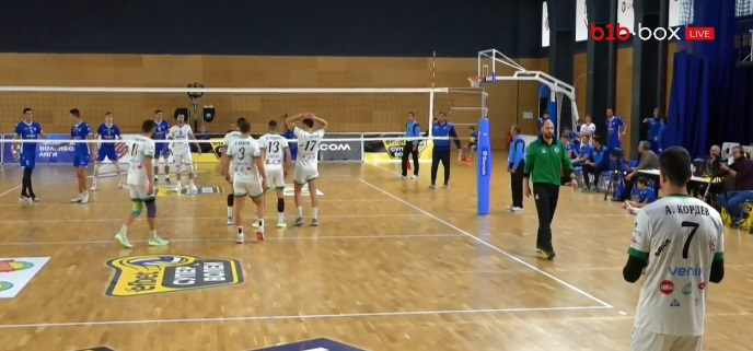 В първата част добруджанци се откъснаха и поведоха убедително с 10:4, след което домакините успяха да стопят изоставането. След 16:16 играта продължи точка за точка, в ключовите моменти "сините" взеха превес. Домакините успяха първи да стигнат до геймбол (24:22), но добруджанци останаха в играта и дори на два пъти също имаха възможност да затворят гейм. В крайна сметка домакините показаха по-здрави нерви спечелиха с 32:30.