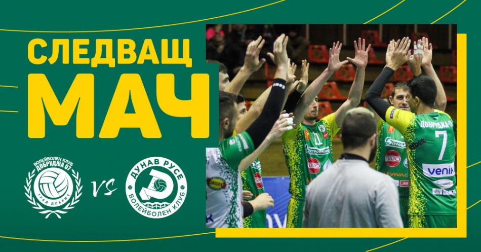 Второ поредно домакинство предстои утре за „Добруджа 07“. От 18.30 часа в зала „Добротица“ ще гостува „Дунав“ Русе в мач от 13-ия кръг на Ефбет Супер волей. Мачът е от изключително значение, тъй като двата отбора се борят за място в осмицата. В момента „Добруджа 07“ и „Дунав“ са съседи в класирането. Добруджанци са на девета позиция с 13 точки (4 победи и 8 загуби), докато тимът от крайдунавския град е позиция напред с 19 точки (6 победи и 6 загуби). Една от загубите през есента бе именно от „Добруджа 07“.