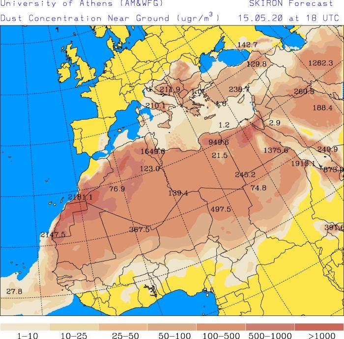Преносът на въздушни маси от Средиземноморието към вътрешността на Европа увеличи концентрацията на фин прах от пустините на Северна Африка. Автомобилите и други хоризонтални повърхности са покрити с жълтеникав прах. Такава е ситуацията и в други държави в Централна и Източна Европа.