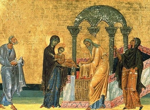 "Ето, Тоя лежи за падане и ставане на мнозина в Израиля и за предмет на противоречия, и на сама тебе меч да прониже душата за да се открият мислите на много сърца". С тези думи благочестивият старец Симеон поема в ръцете си Исус. След като донесли новородения Спасител в светия храм, възрастният мъж се обърнал към Бог с думите да го взима при себе си, защото най-после е видял това, за което бленувал.