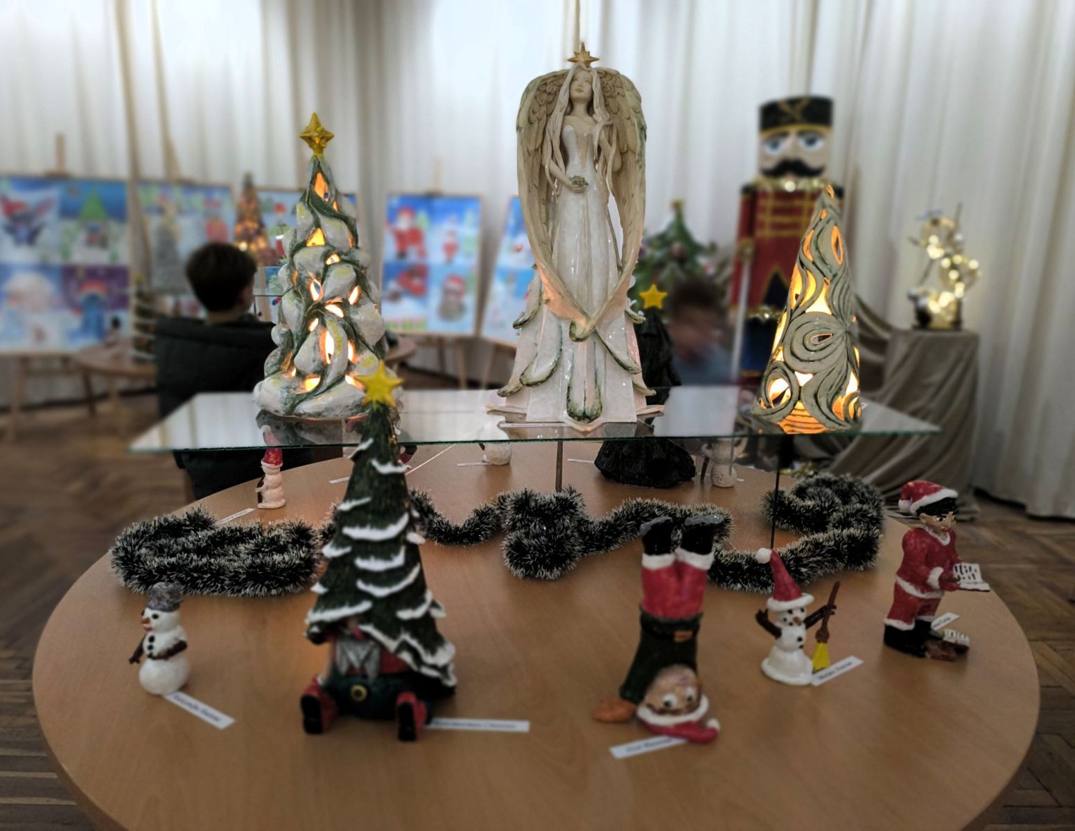 С много любов, търпение и фантазия, използвайки разнообразни техники и материали, децата са изработили керамични изделия, красиви картини със семена и природни материали, коледни декоративни композиции и фигурки, настолна декорация за дома, рисунки и мини платна с акрилни бои. Всяка творба носи индивидуален почерк и празничен дух-подарък за всички ценители на детското изкуство.