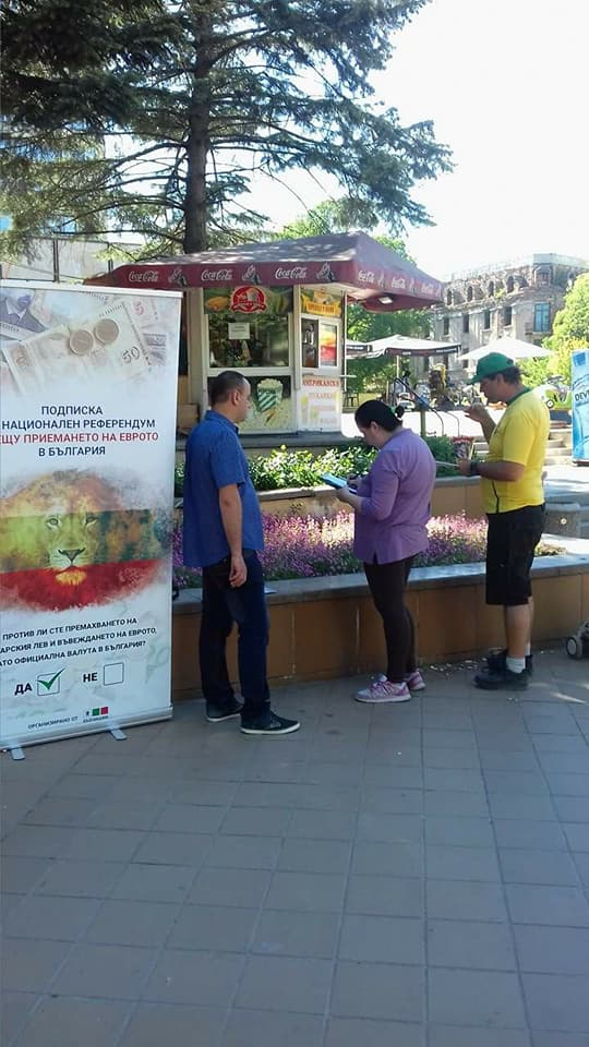 Подписка за провеждане на национален референдум срещу приемането на еврото като официална валута в България започна Движение "Възраждане" в Добрич. Мястото за събиране на подписи е разположено пред Народно читалище „Йордан Йовков-1870 година“. Днес и утре подписи ще се събират след 17,30 ч. Въпросът, формулиран от Движение „Възраждане“ е: „Против ли сте премахването на българския лев и въвеждането на еврото, като официална валута в България?”.