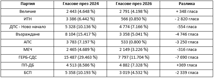 Няколко партии бележат сериозно понижение на доверието от своите избиратели в област Добрич спрямо парламентарните избори през 2024 година, показват данните от Централната избирателна комисия.