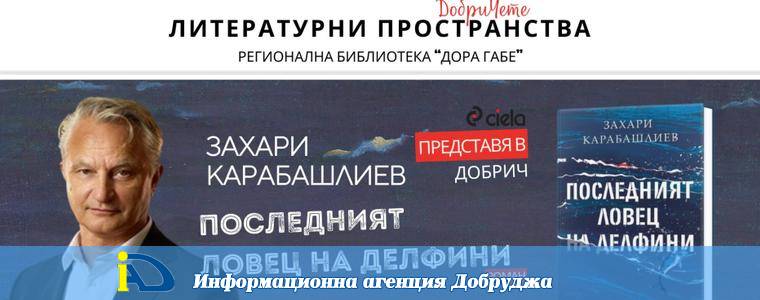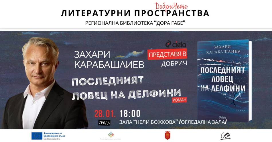 Днес от 18:00 часа в Огледална зала „Нели Божкова“ писателят Захари Карабашлиев ще представи новата си книга „Последният ловец на делфини“. В събитието ще участва и историкът Радослав Симеонов. Организатори са Регионална библиотека „Дора Габе“ и издателство „Сиела“. Входът е свободен.