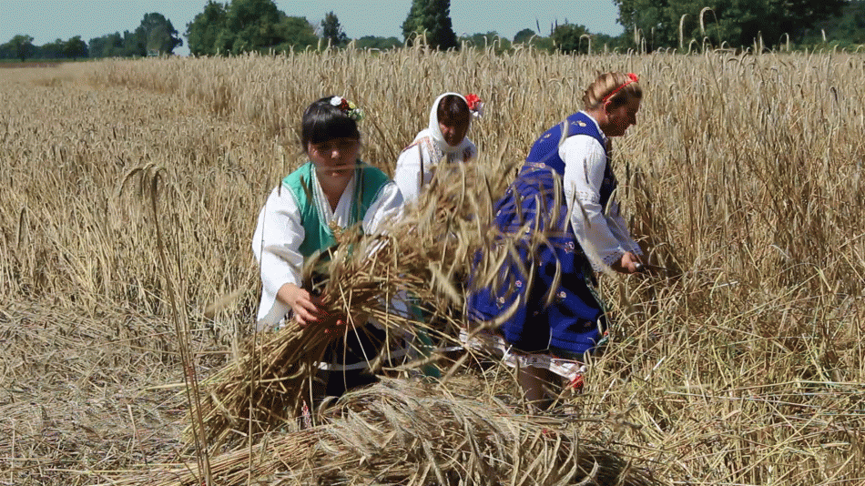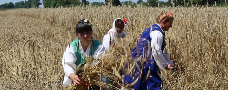 За жътвата от миналото припомниха жени, облечени в народни носии ,които зажънаха със сърп в ръка.