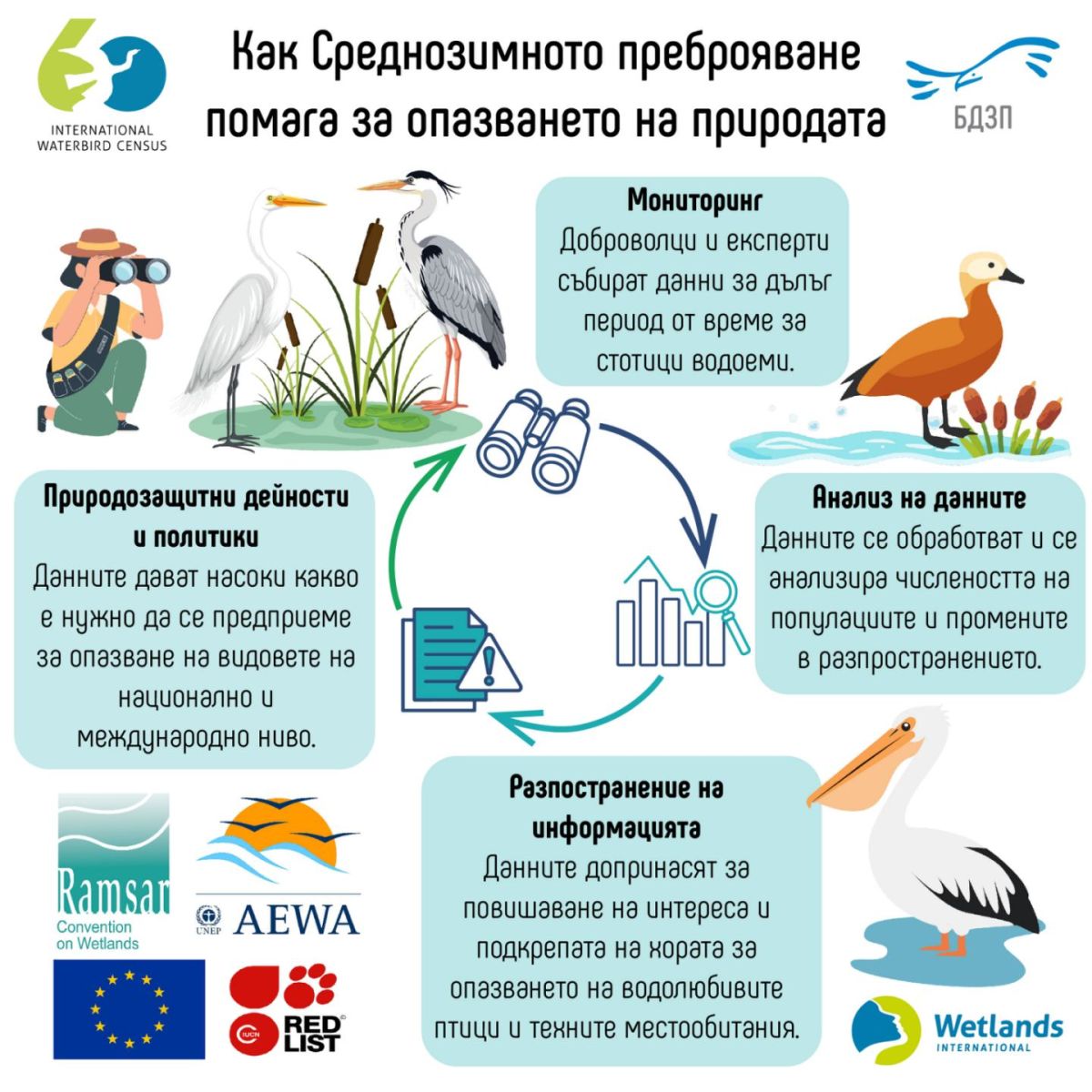 Резултатите от преброяването ще бъдат използвани за анализ на дългосрочните тенденции, включително ефектите от климатичните промени, и за планиране на мерки за опазване на най-ценните влажни зони в региона.