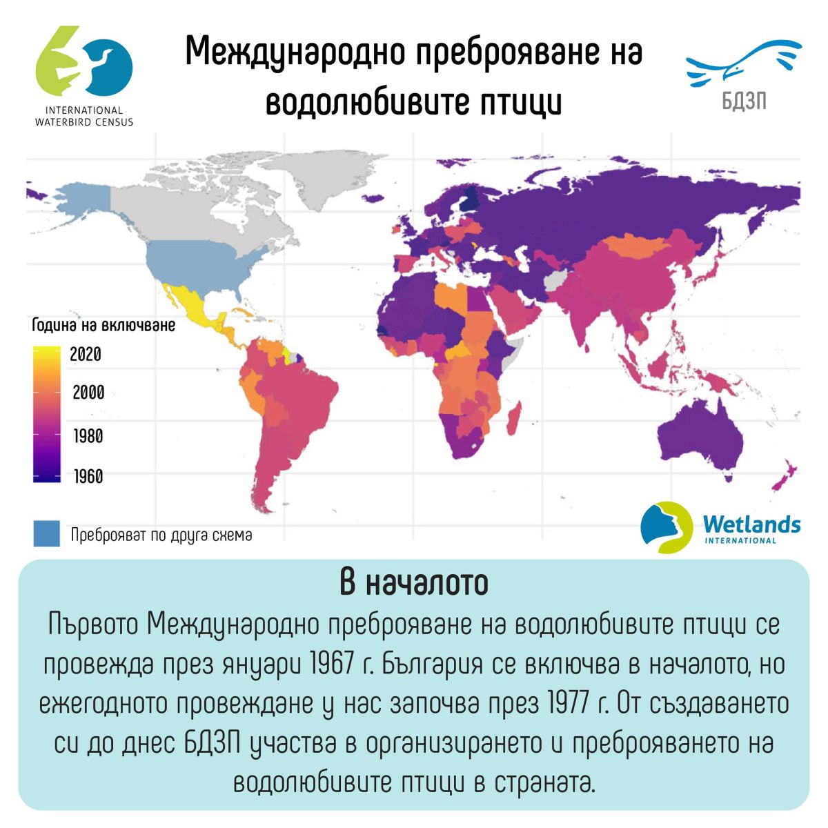 50-ото национално преброяване на зимуващите водолюбиви птици стартира днес и ще продължи до 18 януари. Кампанията е част от мащабна международна инициатива и се организира от Българското дружество за защита на птиците (БДЗП) и Изпълнителната агенция по околна среда и водите.