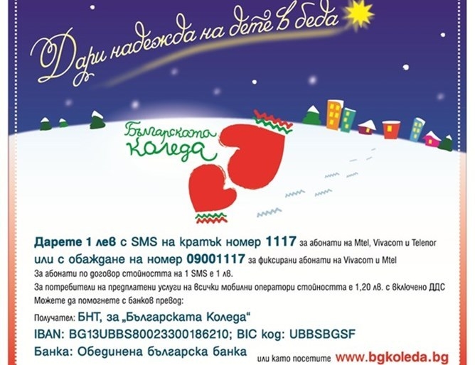 Традиционният благотворителен концерт ни подсеща, че всеки може с есемес на номер 1117 на стойност само 1 лв. да дари надежда. Даренията не приключват тази нощ, кампанията е целогодишна.